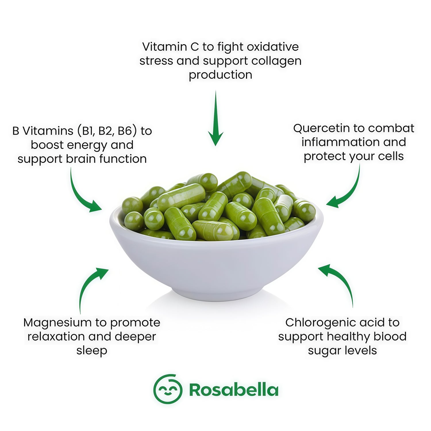 Packed with over 90 essential nutrients—including vitamins, minerals, and antioxidants—Rosabella Moringa replenishes your body with what it’s missing. These nutrients: